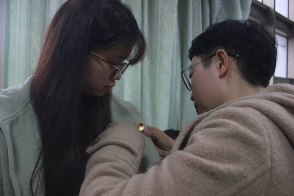 “戴党徽,亮身份,树形象”,为提醒学生时时处处不忘发挥党员的先锋模范作用,强化其党员身份的认同感和归属感,经济管理学院教师党员代表为36名学生党员佩戴党徽。随后,所有与会人员面对党旗宣誓,15会计3班学生张涵煜代表预备党员发言,表示日后将加倍努力,不负党的希望,争取早日成为一名合格而优秀的正式党员。