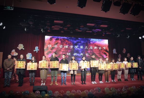 1月4日晚,经济管理学院在一号报告厅举行第三届新生节颁奖晚会。校党委书记崔戴飞、党委副书记陈青、校办公室主任叶彦明、校学工部副部长周贞、校团委副书记徐天、经济管理学院领导班子出席了本次晚会,参加晚会的还有经济管理学院老师代表、各学生组织代表和2017级学生。