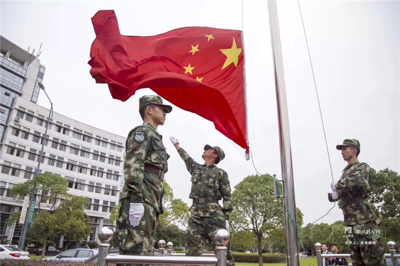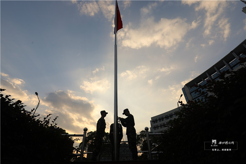 校园国旗护卫队雄姿英发,昂首阔步,走向升旗区域。这是一支“特殊”的队伍,成员均为退伍复学大学生,他们的飒爽英姿,早已成为清晨校园里最亮丽的一道风景线。