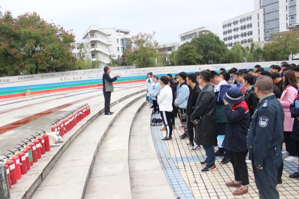 为认真贯彻《国务院消防安全责任制实办法》、《衢州市消防安全责任制实施细则》等精神,提升我校应对火灾的自防自救能力,11月7日,后勤保卫处联合学工部对公寓辅导员、公寓值班员、公寓楼层长、校消防志愿者近百人开展消防知识培训和灭火演练。