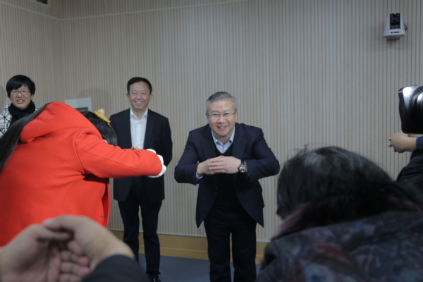 参观智慧教室时,徐文光与衢江平武劳务协作农村致富带头人能力提升培训班的学员们进行亲切的交谈,了解学员们的培训情况并鼓励学员们要勇于创新。临别时,学员们在授课的台湾专家李承翰的带领下,按照“衢州有礼”的方式,向徐文光书记行作揖礼,他以同样的方式向大家回礼。