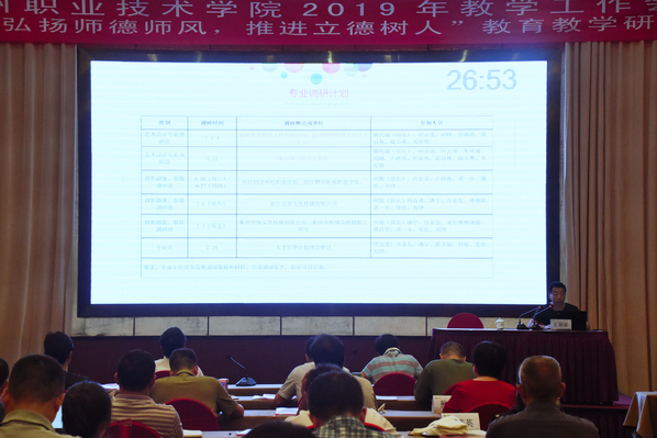 为落实《国家职业教育改革实施方案》,我校实施了专题调研、教师发展、师生研训、校友走访、校园建设等暑期建设项目,为进一步总结2019年暑期项目建设成果,学习和领会国家职业教育改革新理念,指明学校今后突破及发展的路径, 8月13日-15日, 我校召开了2019年教学工作会议暨 “弘扬师德师风 ,推进立德树人”教育教学研讨会。校领导,职能部门负责人,各教学单位领导班子成员,专业团队负责人及相关人员参加了会议。