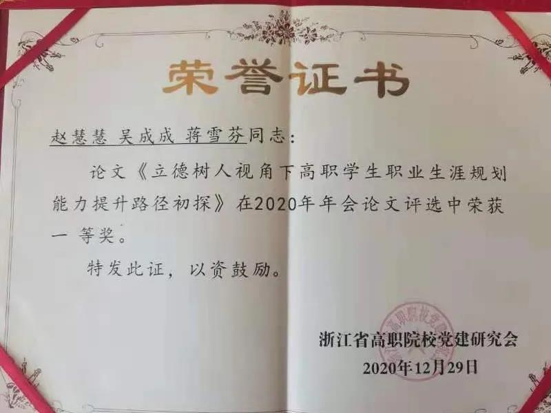 此外,马克思主义学院教师池锦刚等人撰写的《新时期高职院校立德树人实践研究——以提升00后高职大学生核心价值观认同度为视角》获得二等奖。