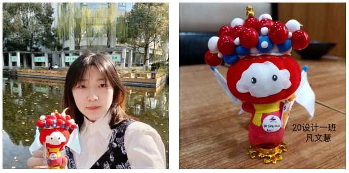 作品介绍:《融》以邮票为主题,把雪容融还原回灯笼的形状,代表着收获、喜庆、温暖和光明。背景由艺术设计学院的院徽拼接而成,加上祥云、烟火等中国元素的点缀,传达出设计学院“多彩艺术,精彩无限”的精神。