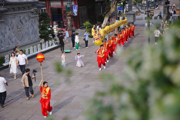 整个快闪活动虽然只有9分30秒,但亮点满满。衢职院舞龙队穿越水亭门历史文化街区,拉开活动序幕。