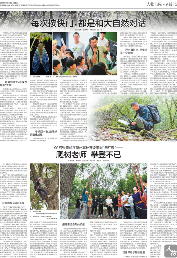《浙江日报》:90后张督成在衢州高校开设攀树“网红课”—— 爬树老师 攀登不已