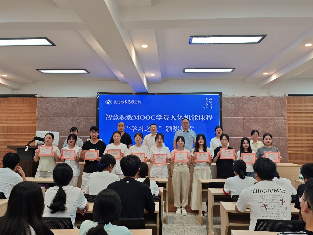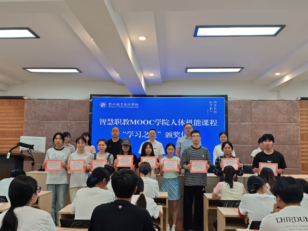 9月10日下午,医学院举行智慧职教MOOC学院人体机能课程“学习之星”颁奖仪式。校党委委员、副校长姚水洪,医学院副院长甘椿椿出席,人体机能课程组全体教师以及获得“学习之星”荣誉的同学们参加了颁奖典礼。
