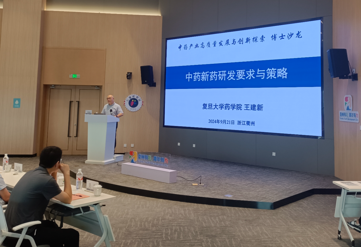 衢州复旦研究院院长王建新教授作题为《中药新药研发要求与策略》的专题报告。