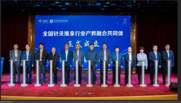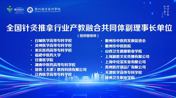 刘保延、喻晓春、方剑乔、肖锋、金仁康、黄伟青、傅根友、王瑾、包利荣、韩军、徐须实、雷黎、卓永岳共同启动全国针灸推拿行业产教融合共同体。