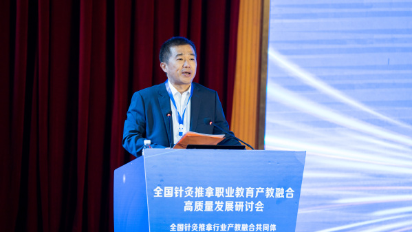理事长单位代表、我校党委书记徐须实作表态发言。他表示,学校将把高质量建设全国针灸推拿职业教育产教融合共同体作为重大项目加以推进,主动扛起理事长单位职责使命,和共同体成员单位齐心协力,全力以赴办好针灸推拿、中医学等专业,积极探索产教融合创新模式,强化教学团队能力建设,全力培养高素质中医针灸复合型技术技能人才,助力中医康养产业的高质量发展。