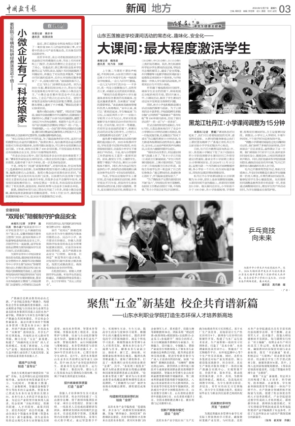 《中国教育报》:衢职院三年横向科研经费涨至近十倍——小微企业有了“科技娘家”