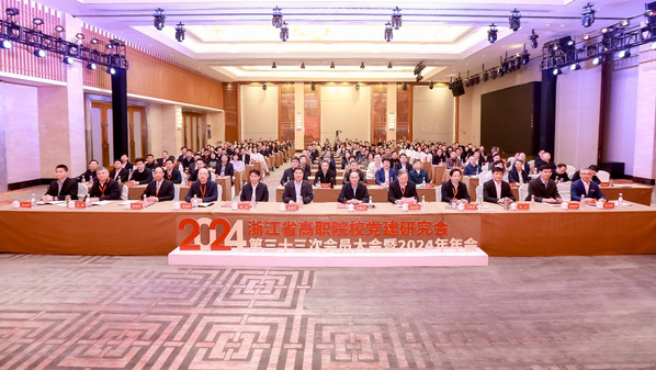 12月5日,由浙江省高职院校党建研究会主办、浙江工商职业技术学院承办的浙江省高职院校党建研究会第三十三次会员大会暨2024年年会在宁波举行,大会为期3天。中国高等教育学会第六届理事会会长瞿振元,宁波市副市长徐强,浙江省委教育工委专职副书记、省教育厅党组副书记许翰信,浙江省教育厅组织处处长陈钦林,宁波市教育局副局长、党委委员陈金辉,浙江省高职院校党建研究会会长周建松,副会长汤兆武、王振洪、陈厥祥,山东、江西及省内20余位高职院校党委书记、校长出席会议。全省50所高职院校200余名代表参加了会议。我校党委书记徐须实,党委委员、组织部部长周帅带队参会。