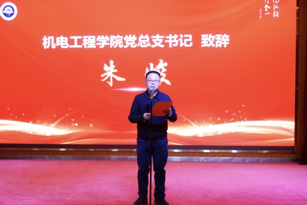 朱峻致辞。他对参与组织和筹备的师生表示衷心感谢,同时对在文化节中表现出色的同学和团队表示祝贺,并鼓励大家在新的一年里继续锤炼实操能力,充分展现自我,发扬机械创新精神。