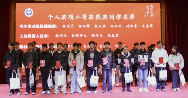魏小华宣布表彰决议,本次文化节总共有机械制图、先进成图技术3D、汽车发动机机械维修、工业机器人技术、传感器设计与应用、新材料智能生产与检测、数字化设计与制造7个赛项,通过各项赛事评委评审、复审,共评出一等奖24人、二等奖41人、三等奖55人,决定对在文化节各项赛事中取得优异成绩的学生和指导教师进行表彰。