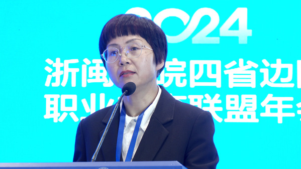 联盟理事会秘书长,我校党委委员、副校长徐浪静代表联盟做2024年联盟工作总结。她表示,2024年是联盟发展的重要一年,这一年,联盟成功推进“四省边际职业培训联盟”迭代升格为“四省边际职业教育联盟”,成功举办联盟五周年系列活动,系统回顾总结了四省边际职业培训联盟过去5年来取得的丰硕成果。希望在联盟成员单位的共同努力下,推动联盟发展成为四省边际乃至浙闽赣皖全域具有一定影响力的职业教育组织。