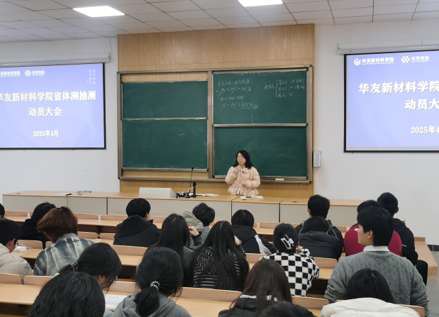 为积极响应省体质抽测工作安排,贯彻落实学校相关部署,激励学生提高身体素质,4月2日中午,华友新材料学院召开浙江省体质抽测学生动员大会,学院党总支副书记吴忠、孔慧兰、校公体部教师赵小龙、吴笑阳,以及全体24级学生、班主任、辅导员参加了会议。