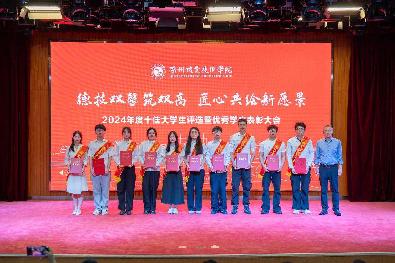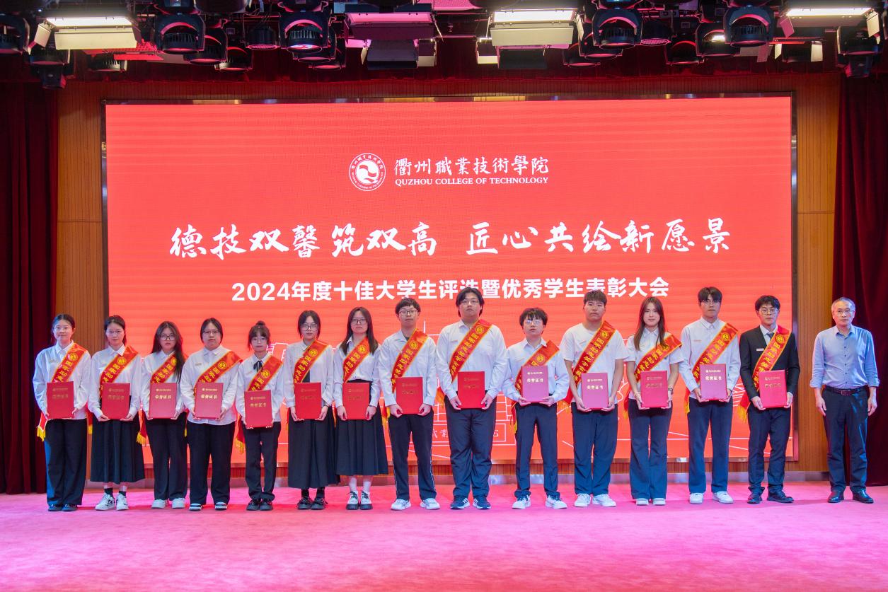 大会对过去一年取得优异成绩的学生集体和个人进行表彰,与会领导为获奖代表颁奖,包括国家励志奖学金185人、国家级学生技能(科技)竞赛25项、浙江省政府奖学金140人、省级学生技能(科技)竞赛一等奖赛项30项、省级学生个人荣誉称号2项、校级优秀学生奖学金1345人、校级学生个人荣誉称号805项、校级双优班11个。