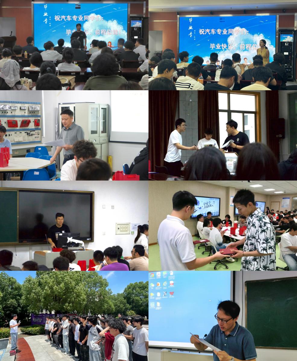 为扎实做好2025届毕业生毕业教育和文明离校工作,引导毕业生坚定理想信念、厚植家国情怀,以昂扬姿态开启人生新征程,6月11日至12日,机电工程学院组织开展"尚德弘毅铸就职业梦想,知行合一续写青春华章"2025届毕业生主题班会。本次班会主要围绕“青春印记”“使命担当”“就业启航”“心理健康”“安全文明”“爱校荣校”六大板块内容展开,班会由各毕业班班主任主持。