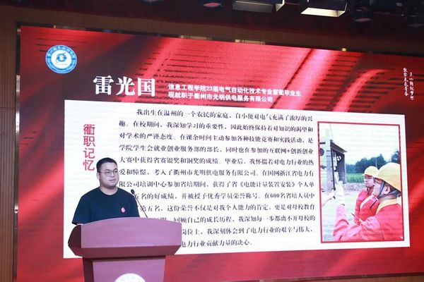 2023届电气自动化专业优秀校友雷光国,分享从校园到职场的成长历程。他在衢州就业后迅速融入团队。在基层供电所岗位上,他积极钻研技术、参与团队攻坚,并勉励学弟学妹珍惜时光、勇于实践、用所学服务社会。