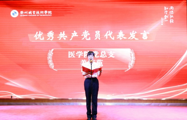 医学院党员教师姜莉苑、继续教育学院党支部书记戚景云作交流发言,新党员代表张咏琪作表态发言。