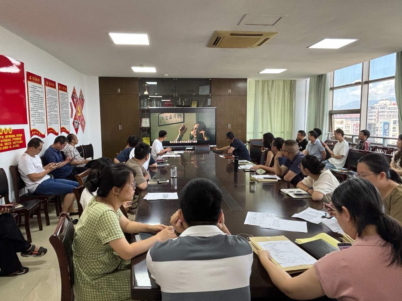 会后,全体教师共同观看反腐倡廉的警示教育片。