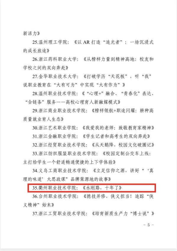 近日,浙江省教育厅新闻办公室、浙江省教育宣传中心公布2024年度浙江教育融媒体典型案例,学校报送的案例《永刚路,十年了》成功入选!为学校首次入选!