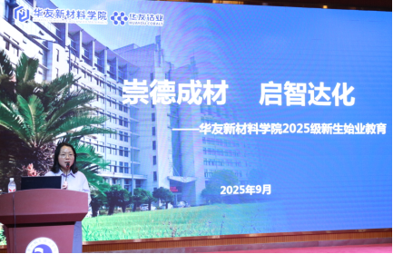 9 月 15 日,华友新材料学院在一号报告厅举行以“崇德成材  启智达化”为主题的2025级新生始业教育暨开学第一课活动。学院院长杨明华,党总支副书记(主持工作)、副院长吴忠以及全体班主任、辅导员、教师参加本次活动。党总支副书记孔慧兰主持。